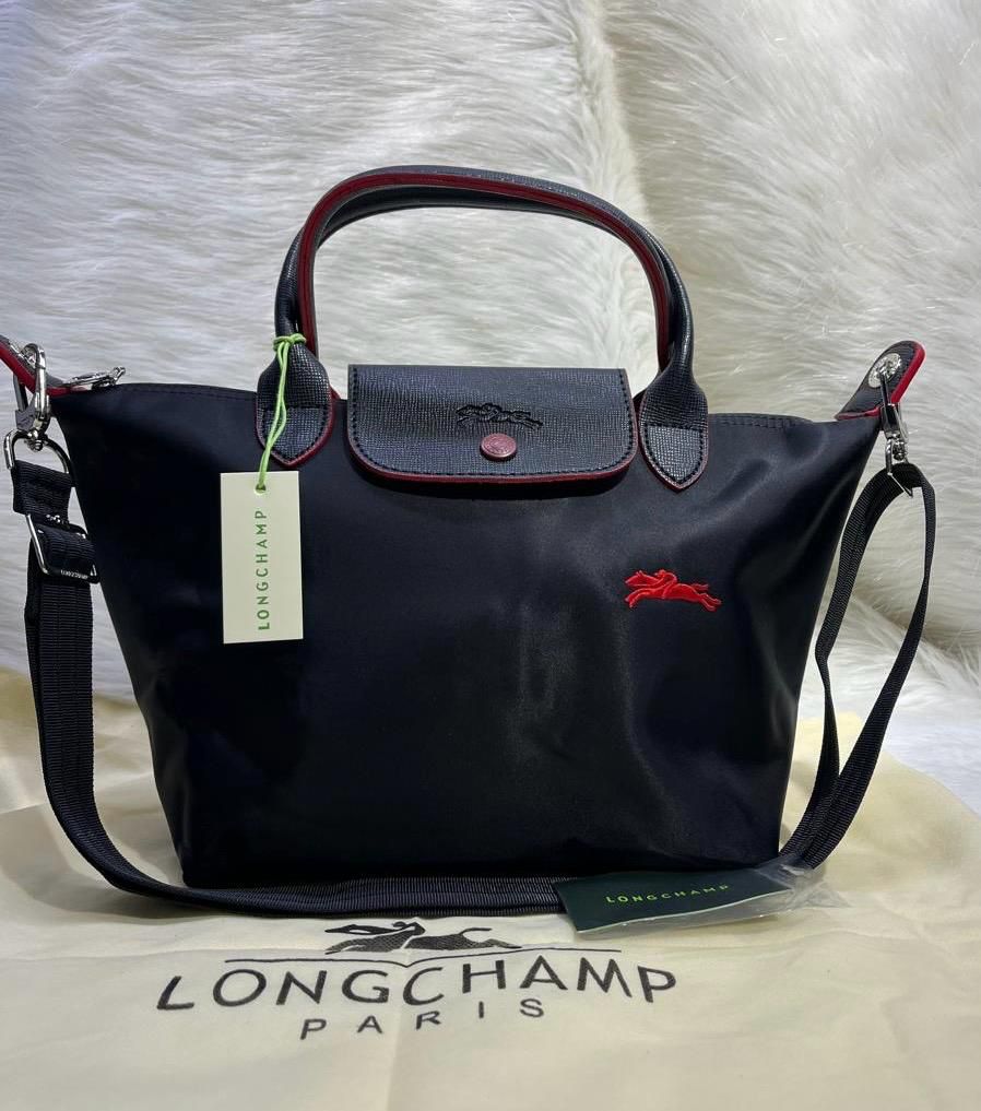 CABALLO GALOPANTE ICÓNICO - El legendario logo bordado del caballo de carreras de Longchamp, símbolo de la maison desde 1948. Un detalle discreto pero inmediatamente reconocible para quienes conocen de moda francesa.