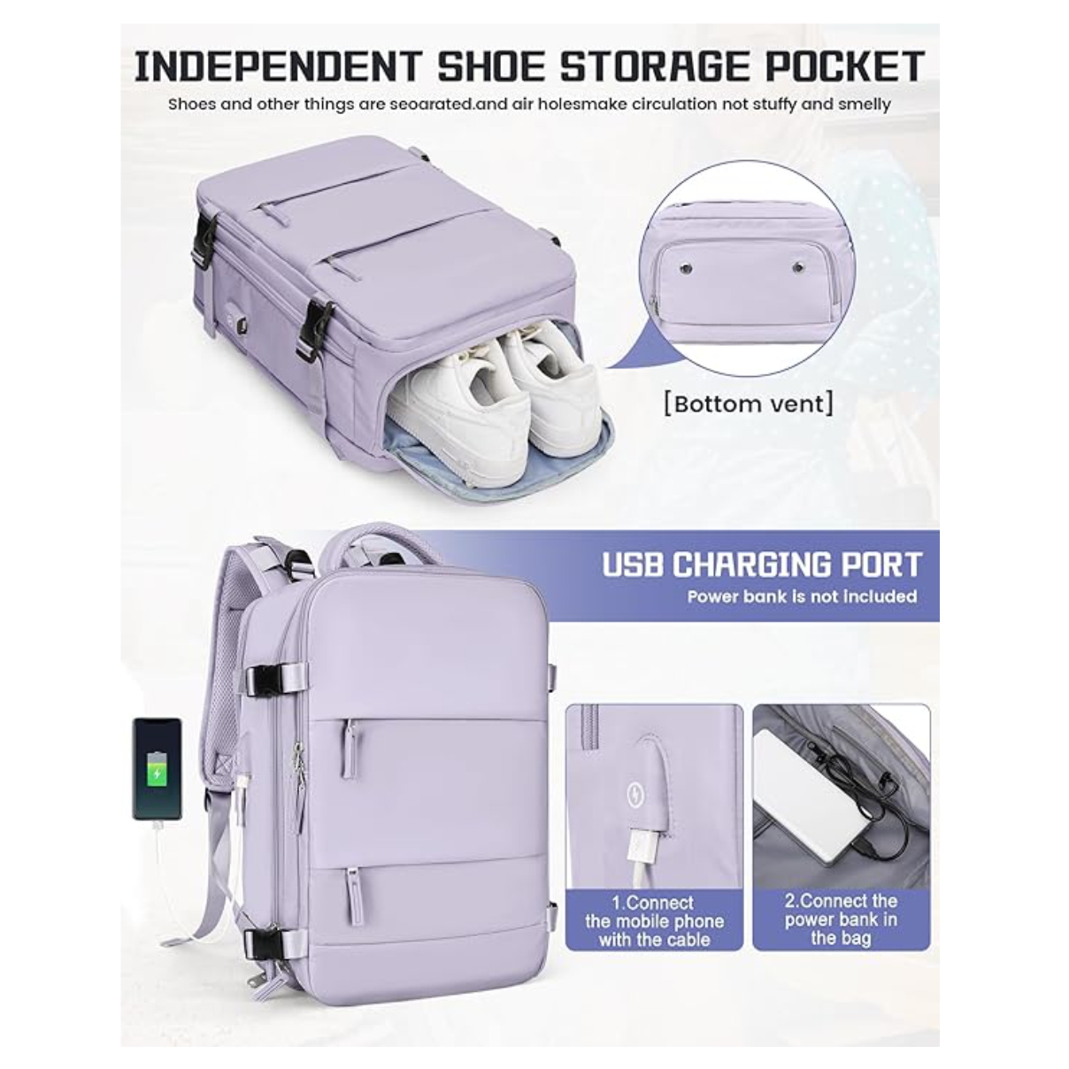 • 1 Mochila de viaje de cabina con compartimiento para zapatos