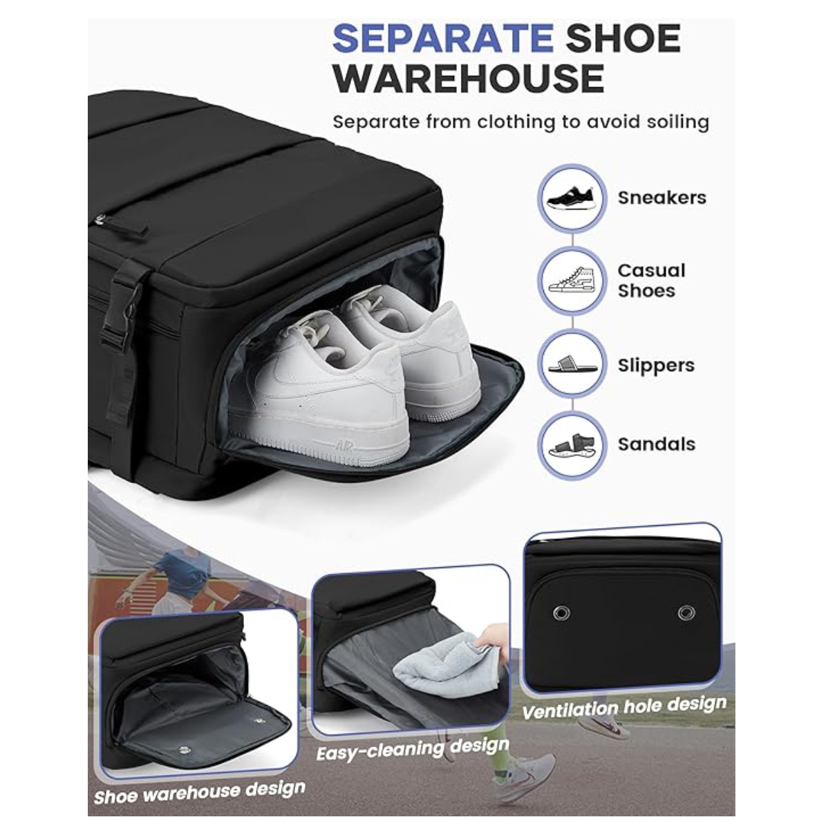 ✅ Compartimiento para zapatos: mantiene tu calzado separado e higiénico, evitando malos olores y manchas.