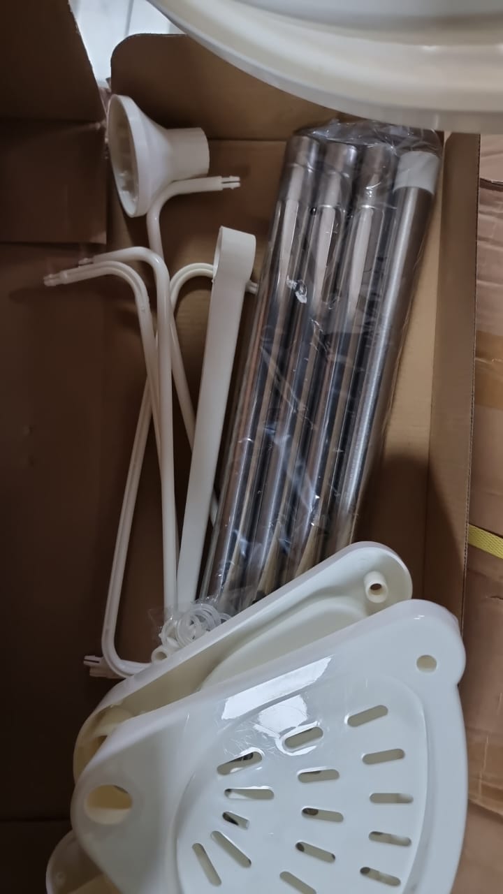 un riel de torre ajustable se puede girar 360 a cualquier lugar, y 4 ganchos junto con una barra para colgar pueden almacenar una pelota de baño y un gorro de ducha. Estanterías más anchas y profundas, base estable y fuerte, lo hacen más seguro y sujeto.