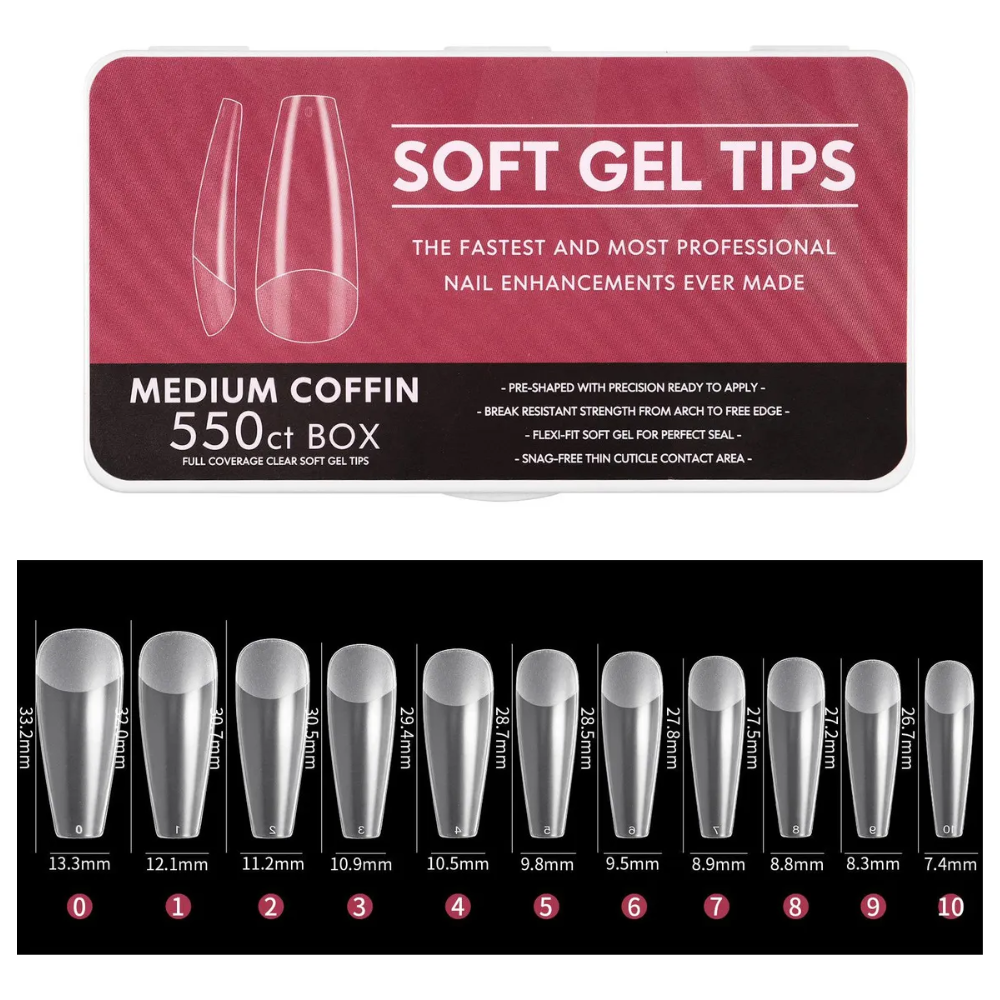 La caja incluye múltiples tamaños para adaptarse perfectamente a diferentes formas de uñas, permitiendo una aplicación precisa y personalizada en cada cliente. Esto asegura un resultado profesional, cómodo y estético, optimizando tiempos y mejorando la experiencia de trabajo. Son una herramienta indispensable para manicuristas que buscan resultados impecables en poco tiempo con apariencia premium y excelente resistencia.